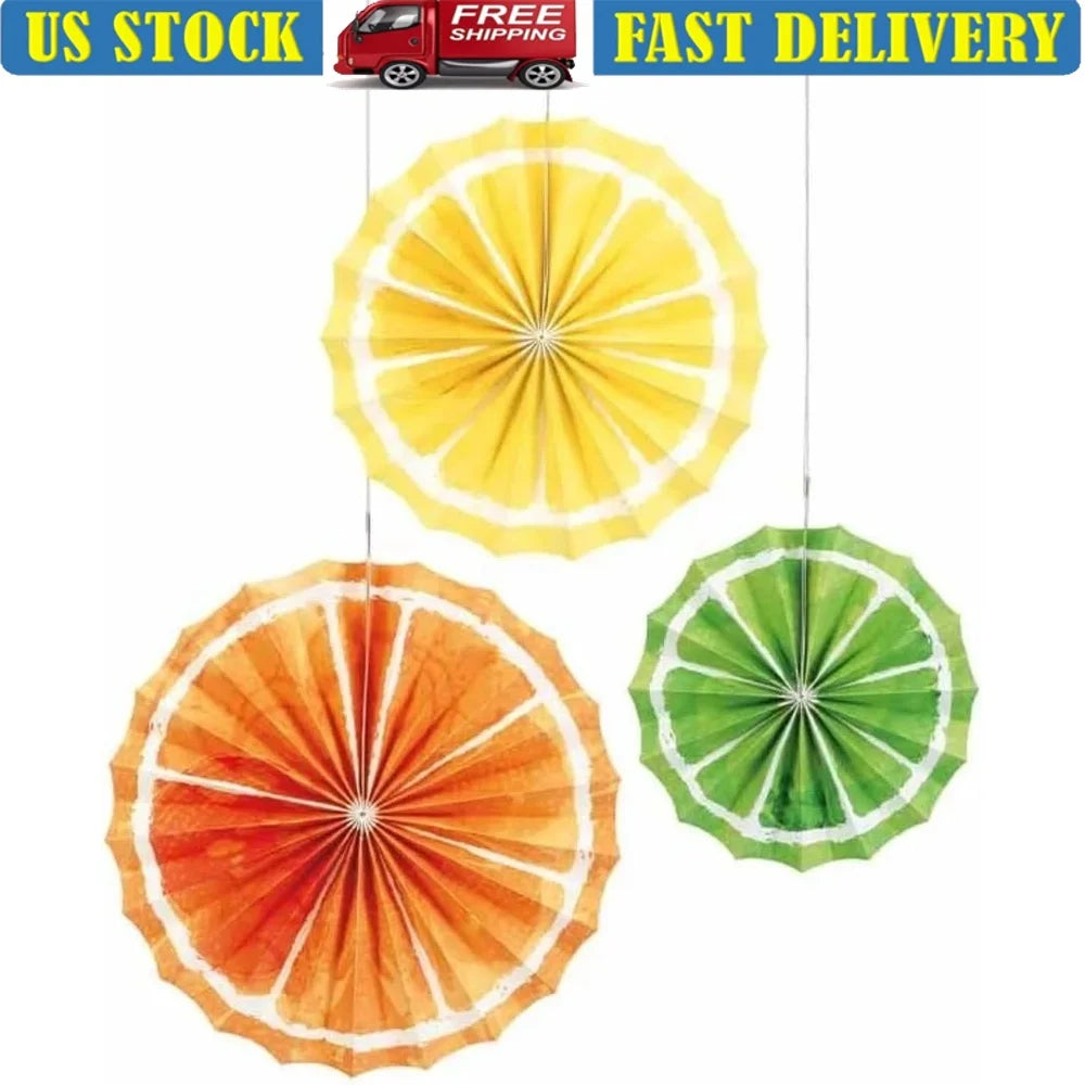 Multicolor Citrus Fruit Tissue Paper Fans Pack of 3 Vibrant Tropical Party Decorations Easy Assembly Summer Event Decor