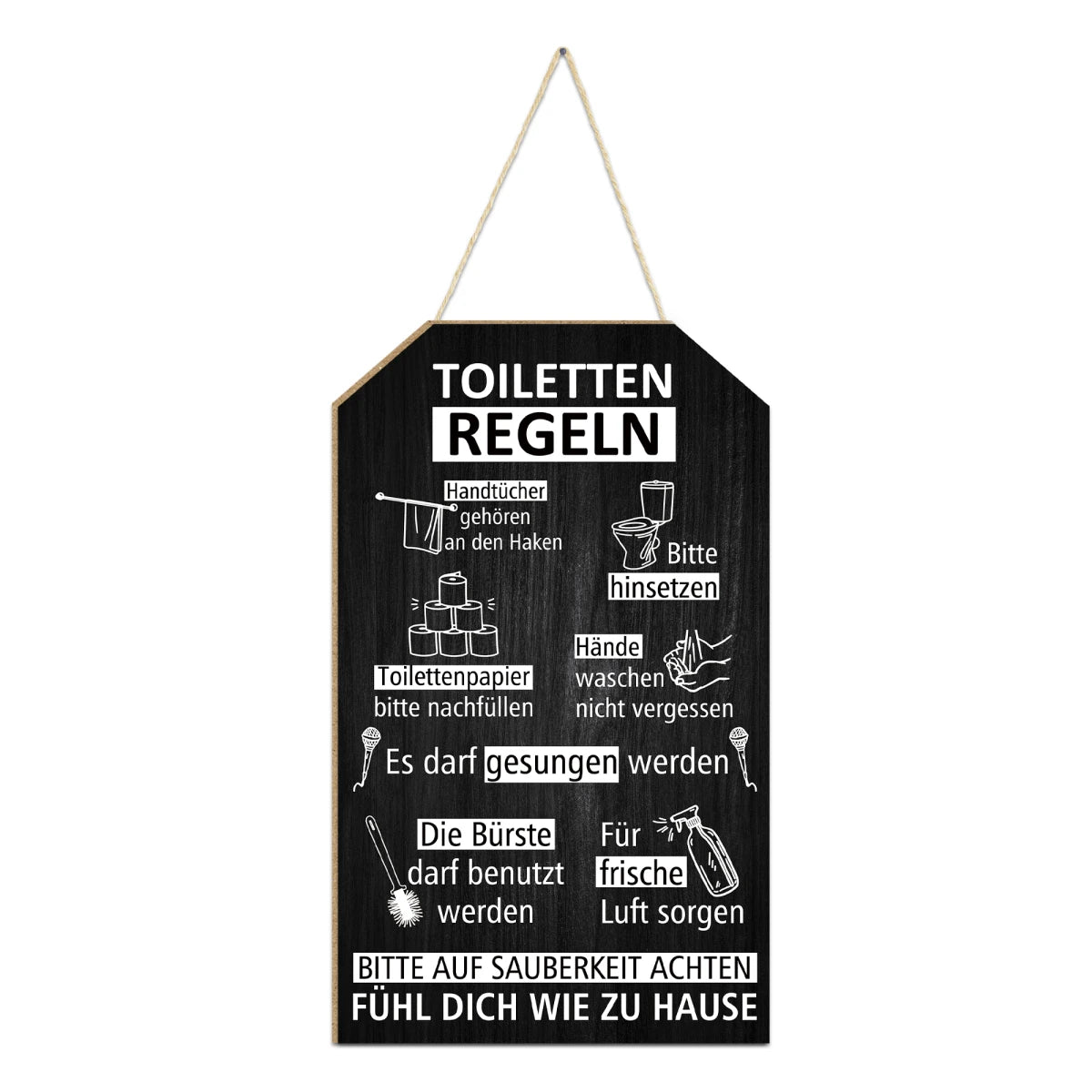 Putuo Decor 1pc German Wooden Hanging Sign, Toiletten Regeln, Wall Art Decoration for Home Farmhouse Toilet Washroom Bathroom,