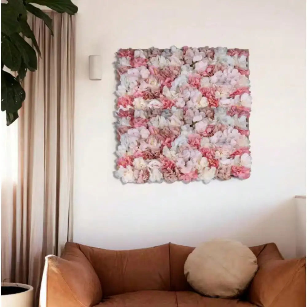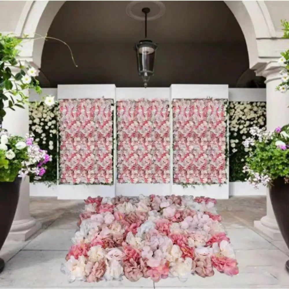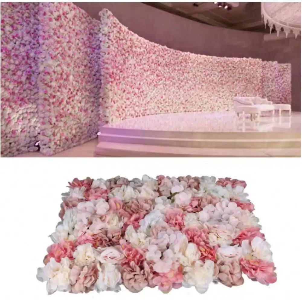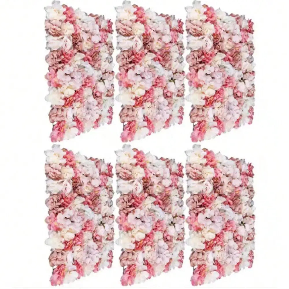 Artificial Flower Wall, 6-Piece 23.62 in. x 15.74 in. White and Pink Artificial Rose Flower Wall Panel for Wedding Decor