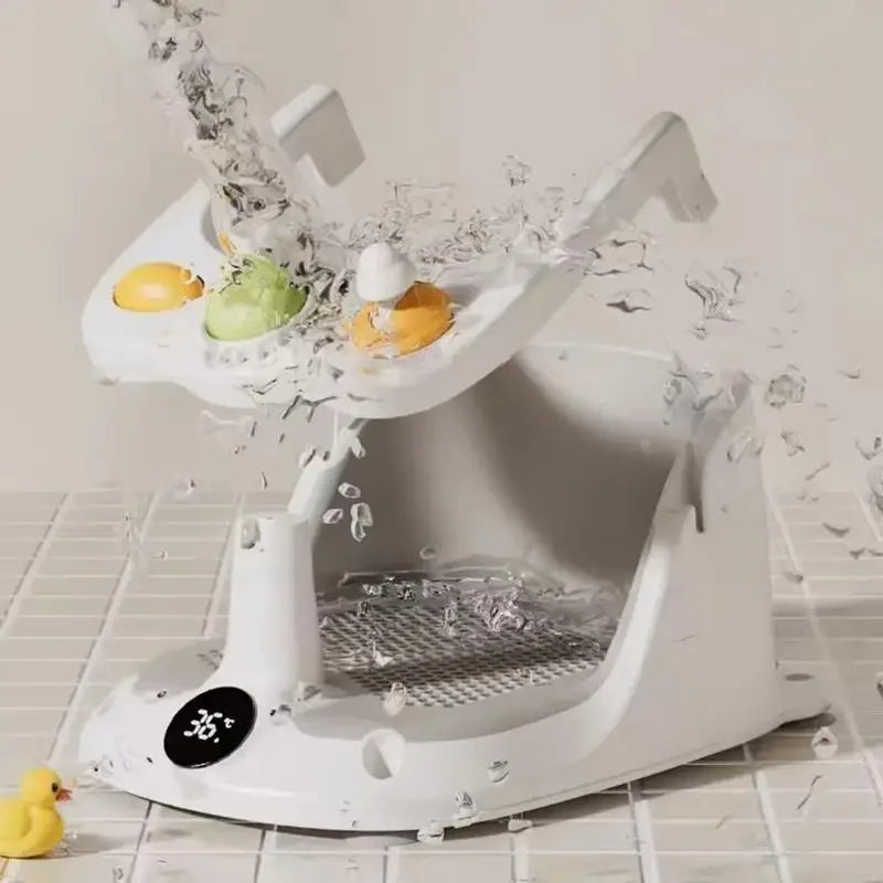 The foldable design of this baby bath seat makes it easy to store and transport, perfect for travel or home use.