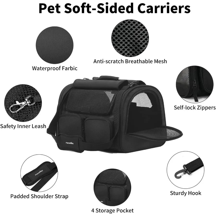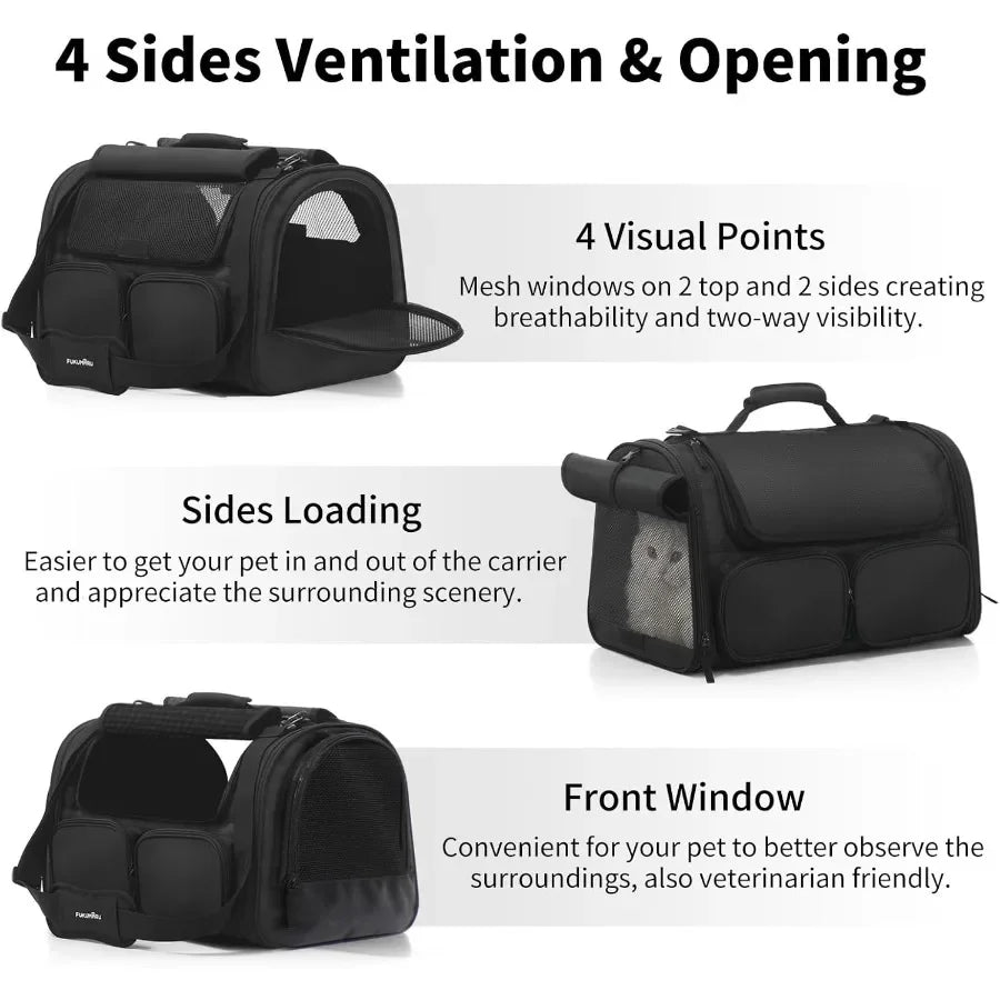Cat Carrier with 4 Mesh Windows for Small Dogs and Cats 4 Storage Pockets Travel Bag Airline Approved Pet Carrier Under 15 lb R