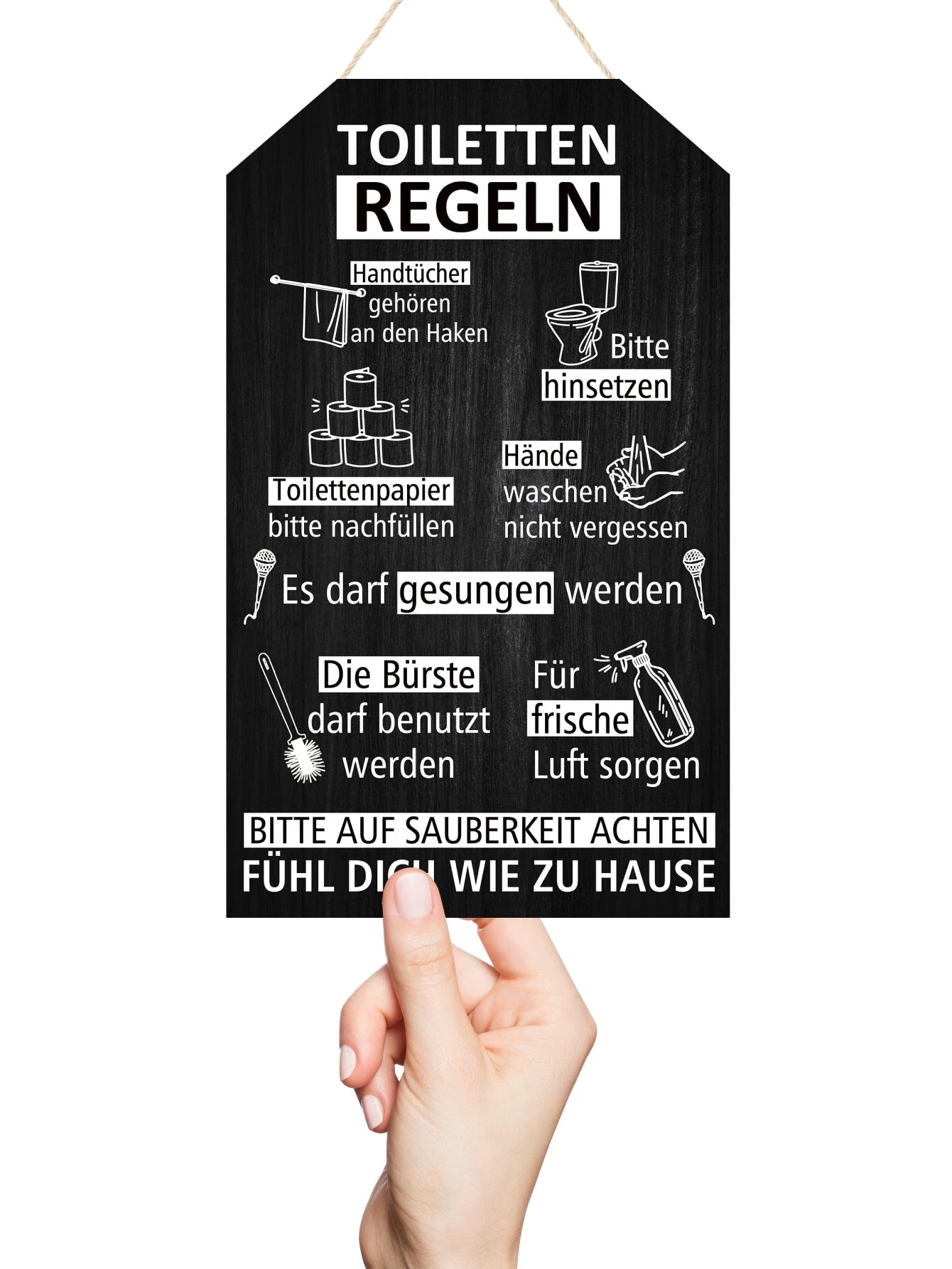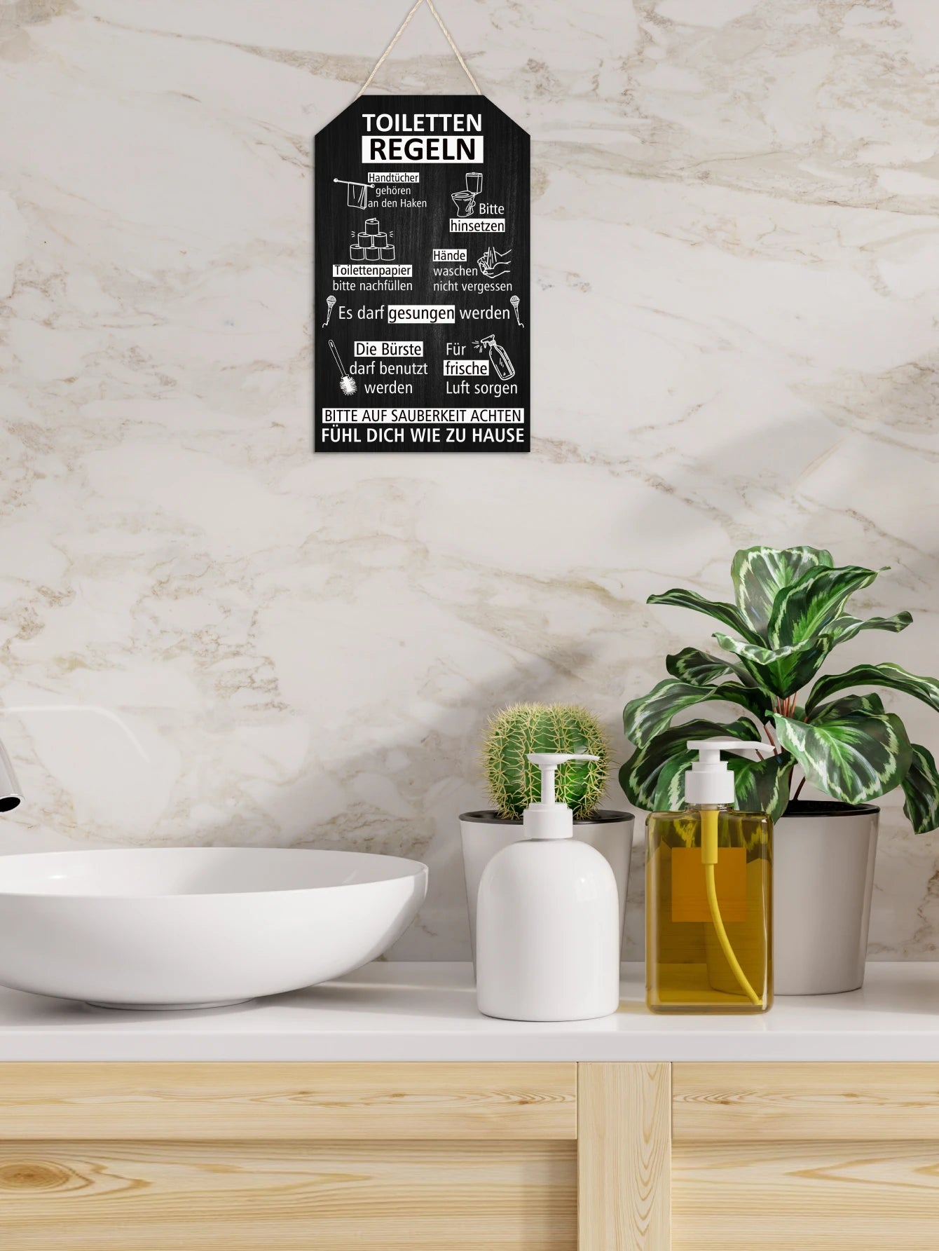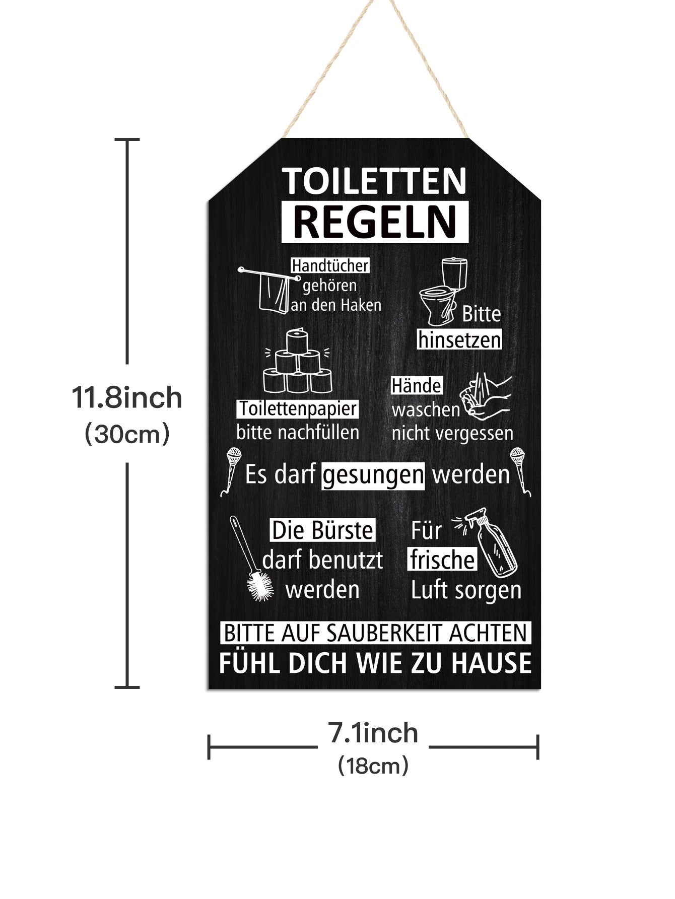 Putuo Decor 1pc German Wooden Hanging Sign, Toiletten Regeln, Wall Art Decoration for Home Farmhouse Toilet Washroom Bathroom,