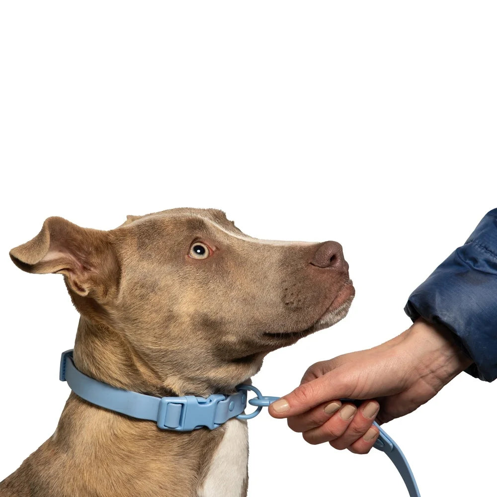 This leash pairs perfectly with the matching blue water and dirt-resistant collar to complete the look